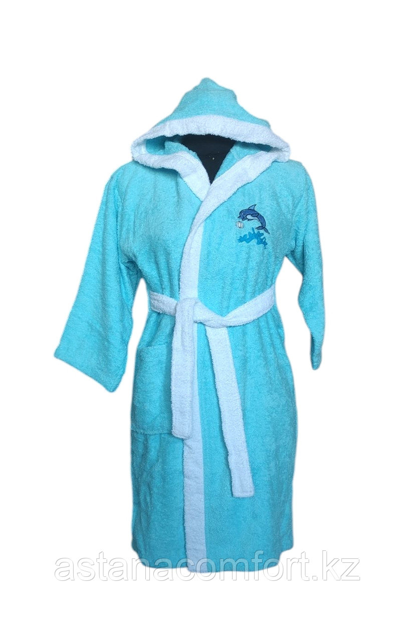 Детский халат махровый производится из 100% натурального сырья и обладает высокой впитывающей способностью. Стойкость окраски и специальная противоусадочная технология обеспечивают длительное сохранение эстетических и качественных характеристик, гарантируя комфорт в эксплуатации и уходе. Вышивка - дельфин